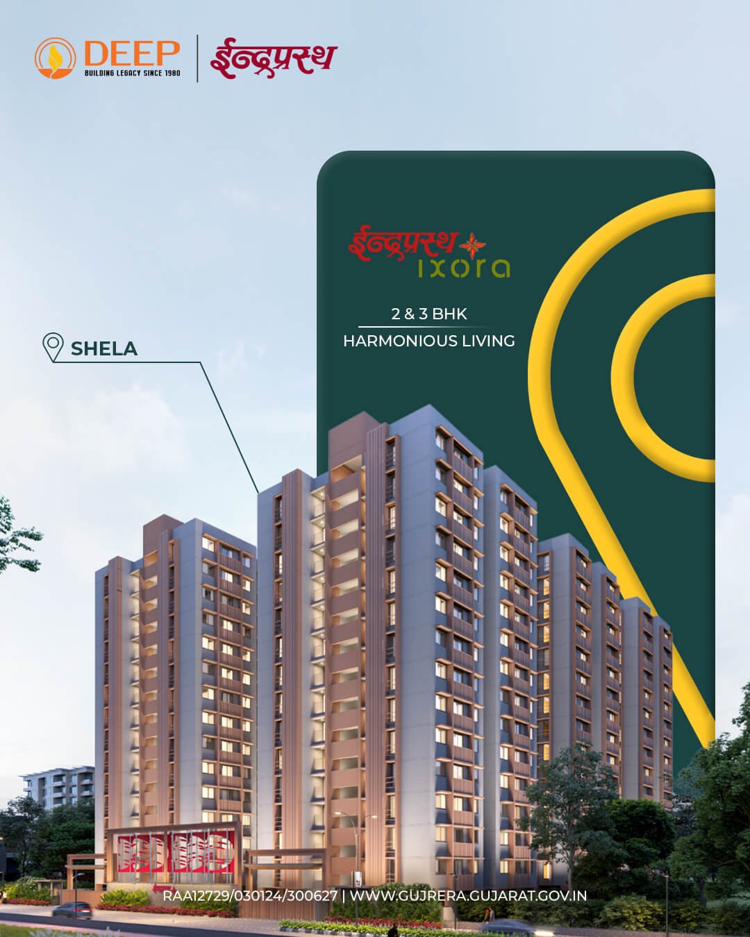 Discover the epitome of sophisticated living at Indraprasth Ixora, nestled in the upcoming locale of Shela. This prestigious development boasts an impressive ensemble of 5 majestic towers, each rising to 14 floors ofarchitectural brilliance. With a total of 168 meticulously designed 3-BHK units and 112 elegant 2-BHK units, Indraprasth Ixora offers a harmonious blend of space, luxury, and comfort.